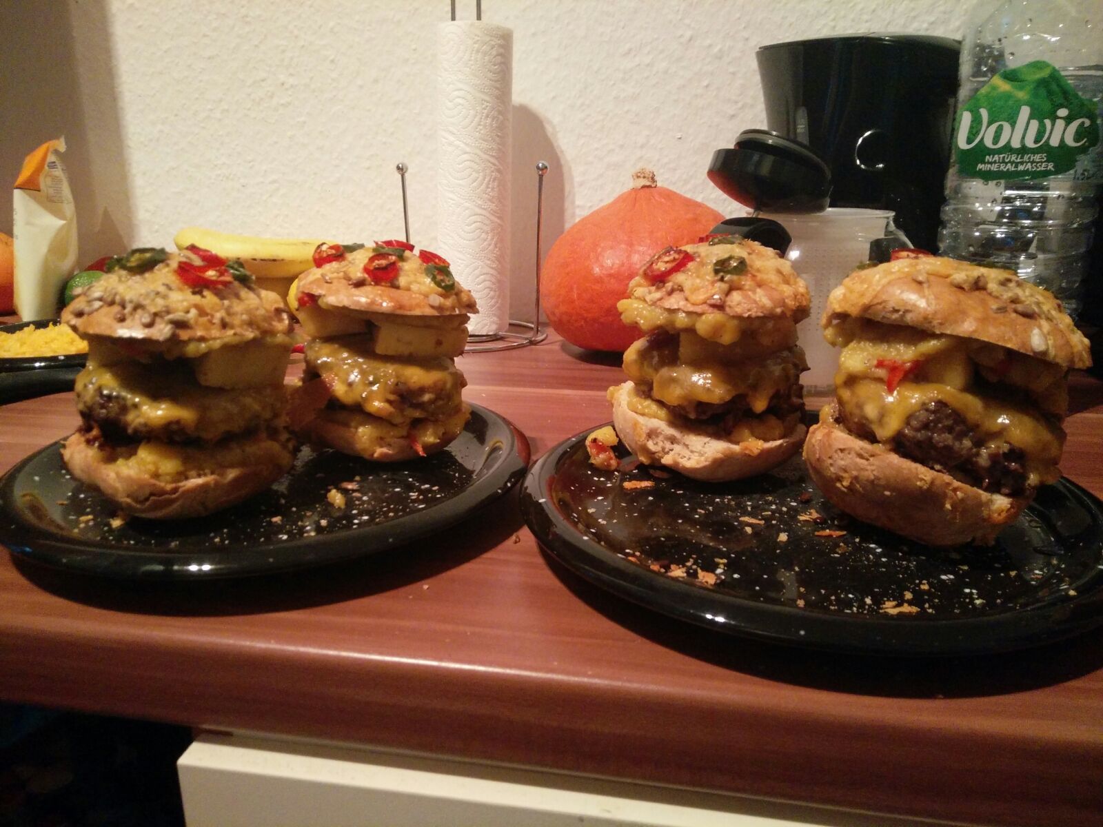 Inspiriert vom Monkey Island Burger des Youtube-Kanals „Grillshow“ (hier gibts das volle Video: Video) entschlossen wir uns also, das Meisterwerk einmal nachzumachen. Und voilá: Das Ergebnis kann sich sehen lassen 🙂 Geschmacklich der Oberhammer, da hat Jonny’s Doppelfaust ordentlich was hergezaubert. Das Brötchen hätte etwas mehr aufgehen dürfen, aber hey. Man kann ja nicht alles haben!